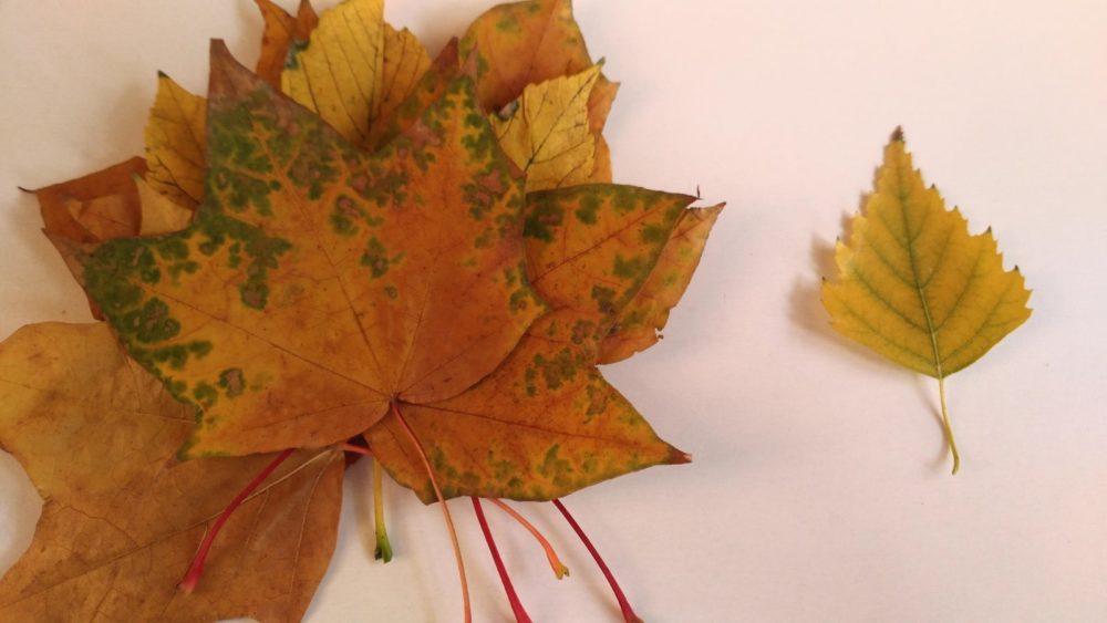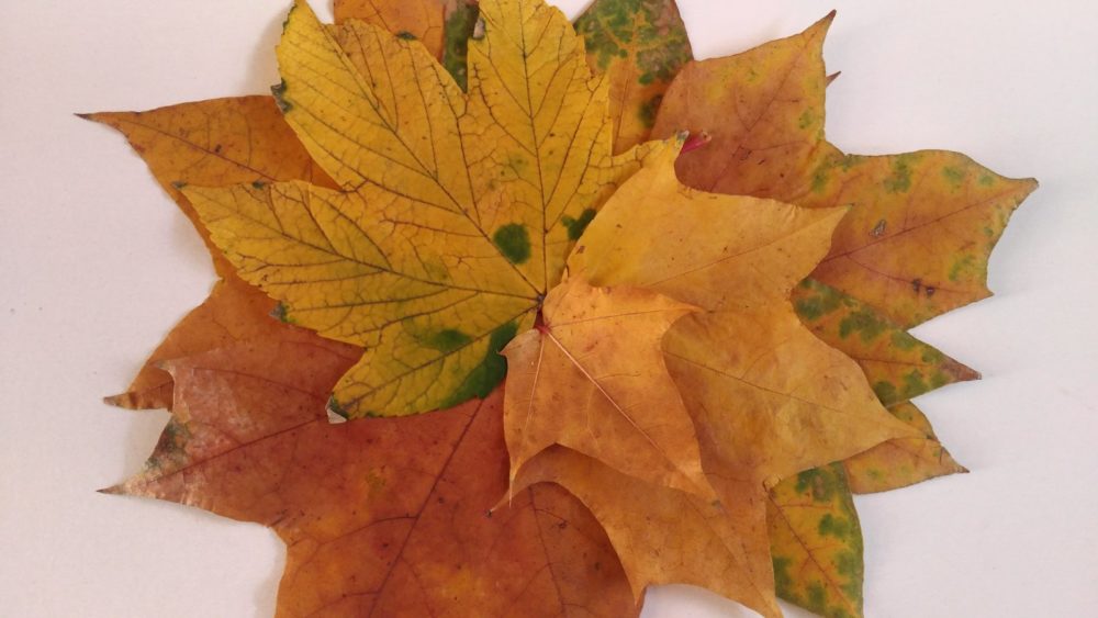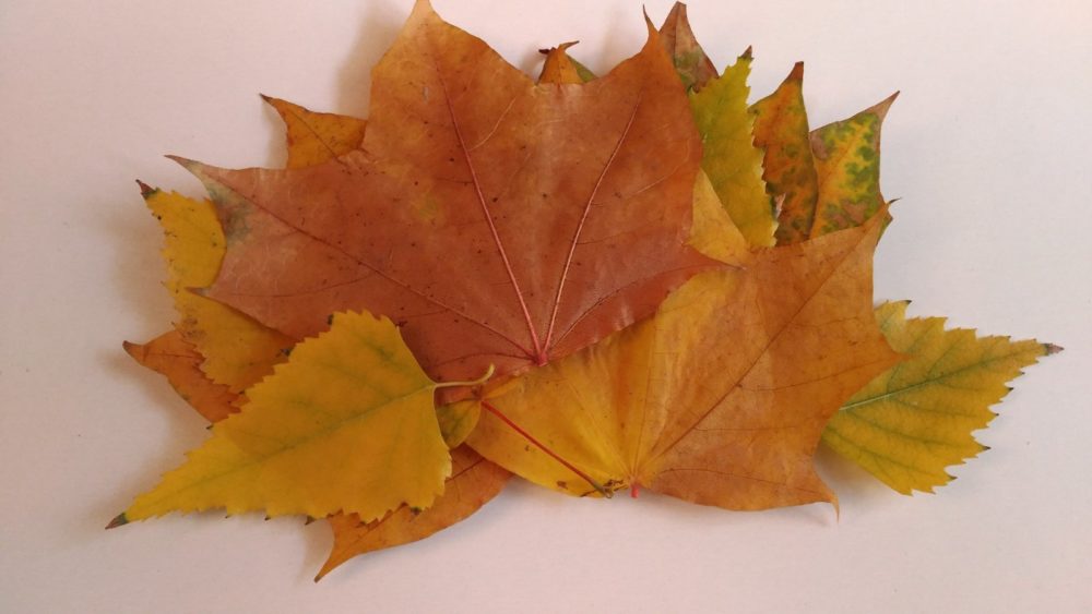 - высушенные под прессом листья клена желтых и рыжих оттенков;