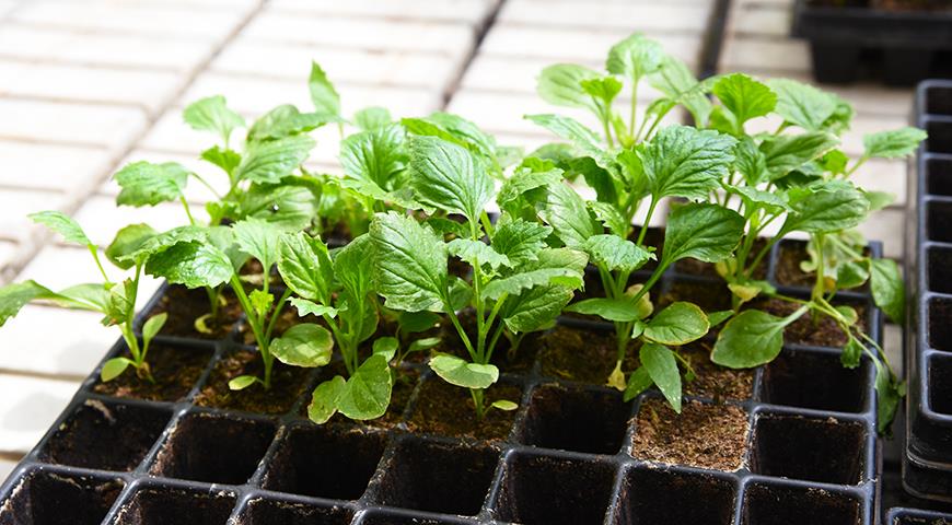 Молодая рассада однолетней астры перед высадкой в цветник.