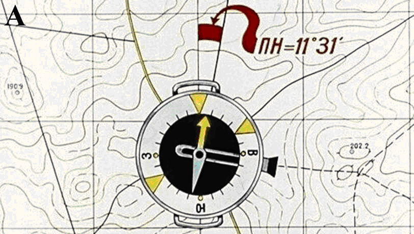 Ориентирование карты по компасу