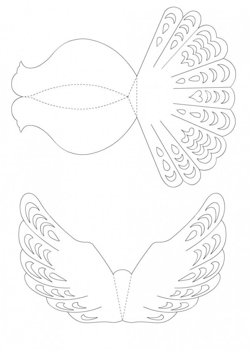 Идею нашла в интернете вместе с шаблонами, но с них голубь выходит маленький. Я нарисовала шаблоны чуть больше. Разместила туловище на лист бумаги, а на второй лист крылья.