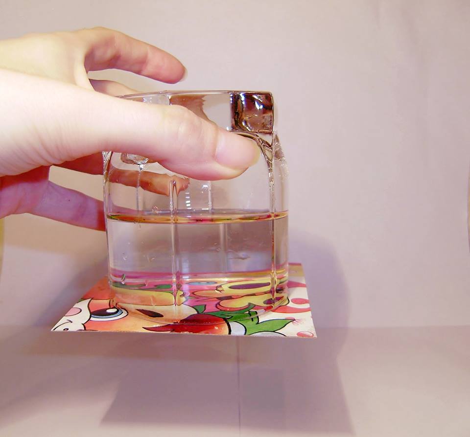 Фокус очень простой – в емкость с жидкостью нужно опустить зеркало и посветить на него под небольшим углом фонариком. Осталось при помощи бумаги поймать разноцветные лучи.