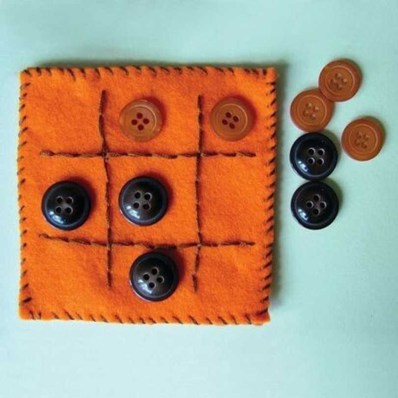 До недавнего времени для этого популярного развлечения достаточно было листка из тетради и пары карандашей, теперь делают настоящее игровое поле из 9 квадратов и десяти мелких предметов для выкладывания –постоянный и привлекательный инвентарь. «Крестиками» и «ноликами» послужат бусины двух цветов, пуговицы, окрашенные камушки, деревянные нарезки – все, что подскажет фантазия или окажется под рукой.