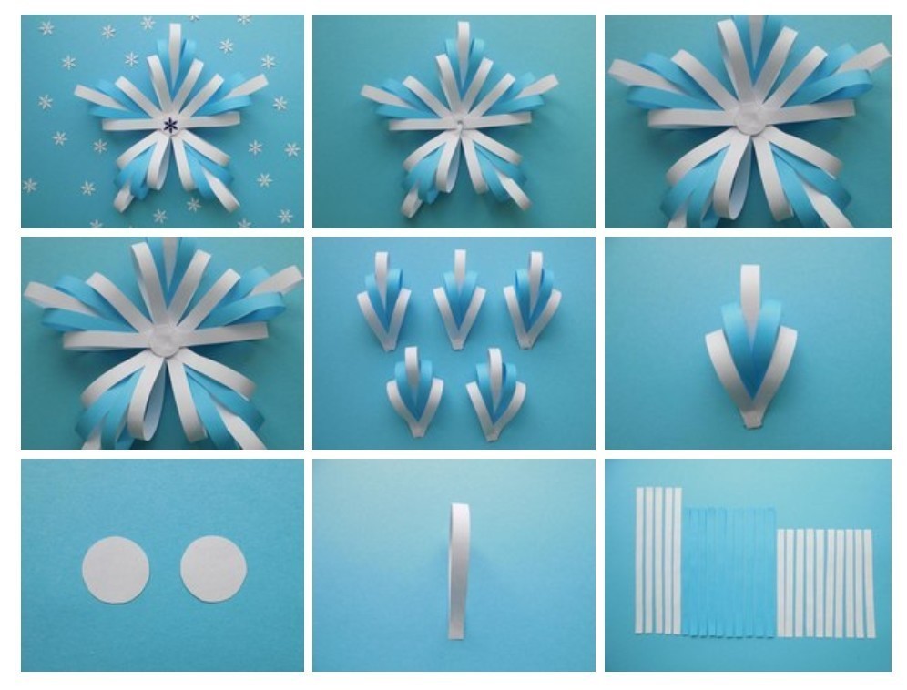 Маленьким членам семьи выберем самые легкие в выполнении объемные снежинки.