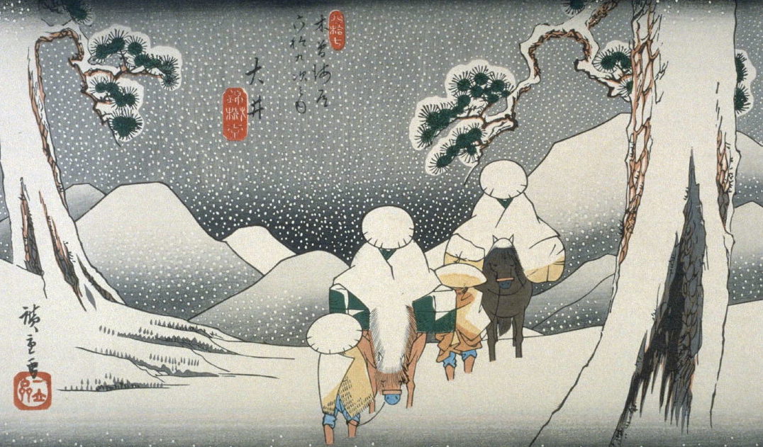 Киго mochiyuki — это снег, валящий крупными хлопьями. Но часть mochi также может обозначать «моти» — японские рисовые лепешки, которые обычно готовят на Новый год. Shiraito — еще одно название традиционной «зимней» пищи: это моти, нарезанные или вытянутые в форме длинной толстой лапши. Глядя на снегопад, поэт вспоминает новогоднее лакомство и думает, что скоро хлопья осядут на ветвях ивы, превратив их в белоснежную лапшу сираитомоти.