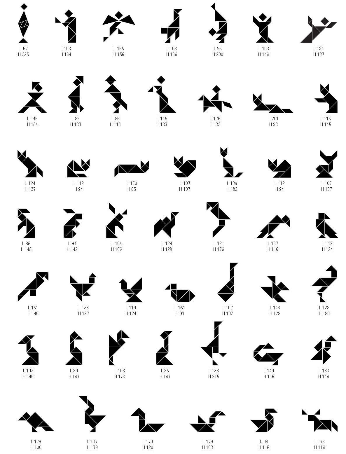 В последнее время танграм частенько используют дизайнеры. Самое удачное применение танграма, пожалуй, в качестве мебели. Есть и столы-танграмы, и трансформируемая мягкая мебель, и корпусная мебель. Вся мебель, построенная по принципу танграма, довольно удобна и функциональна. Она может видоизменятся в зависимости от настроения и желания хозяина. Сколько всевозможных вариантов и комбинаций можно составить из треугольных, квадратных и четырехугольных полок. При покупке такой мебели вместе с инструкцией покупателю выдаются несколько листов с картинками на разные темы, которые можно сложить из этих полок.