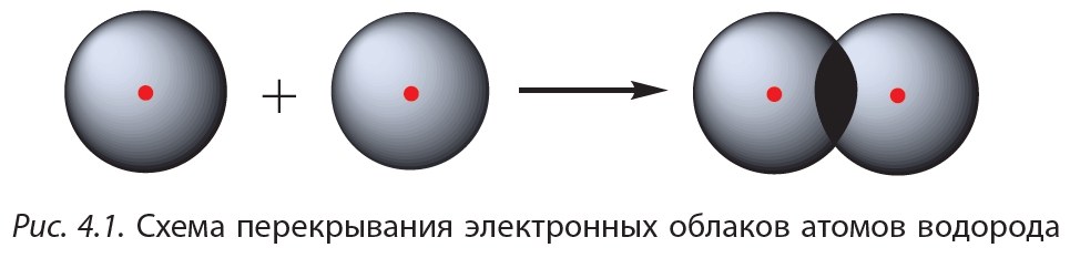 Простейший пример соединения с ковалентной связью — молекула водорода Н2. Атом водорода состоит из положительно заряженного ядра и одного неспаренного электрона, занимающего 1s-орбиталь. При сближении двух атомов водорода происходит перекрывание их электронных облаков: