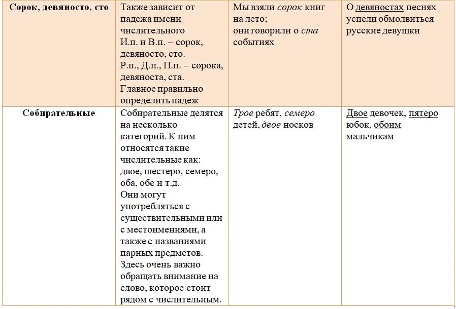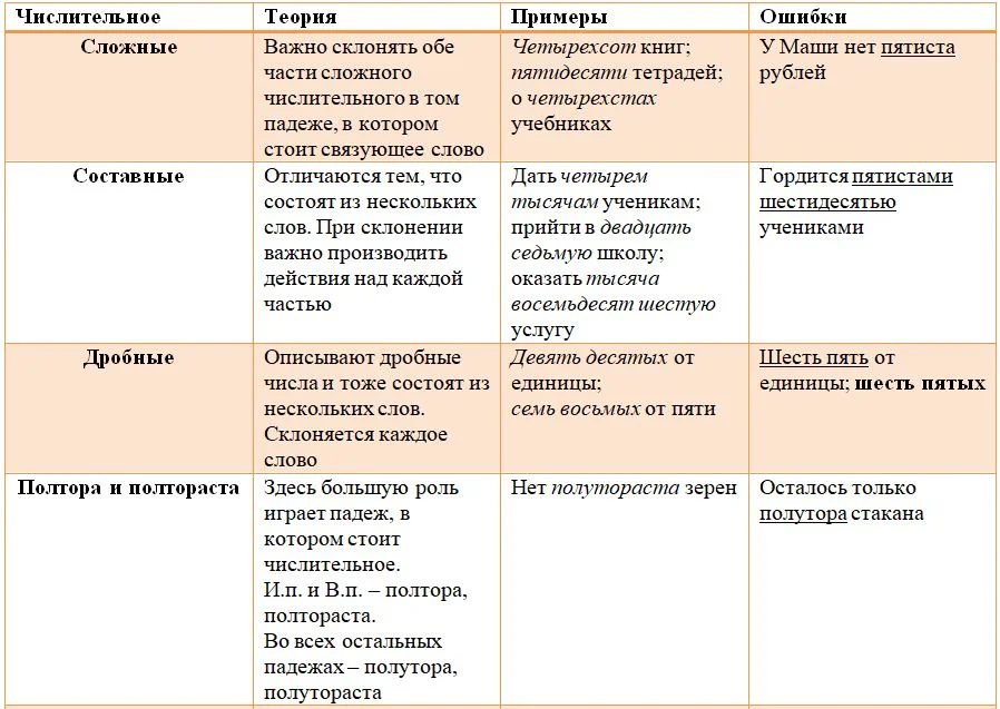 Рассмотрим на примере теории и распространенных ошибок, как верно склонять числительное и образовывать его новые формы. Все формы числительных указаны в таблице: