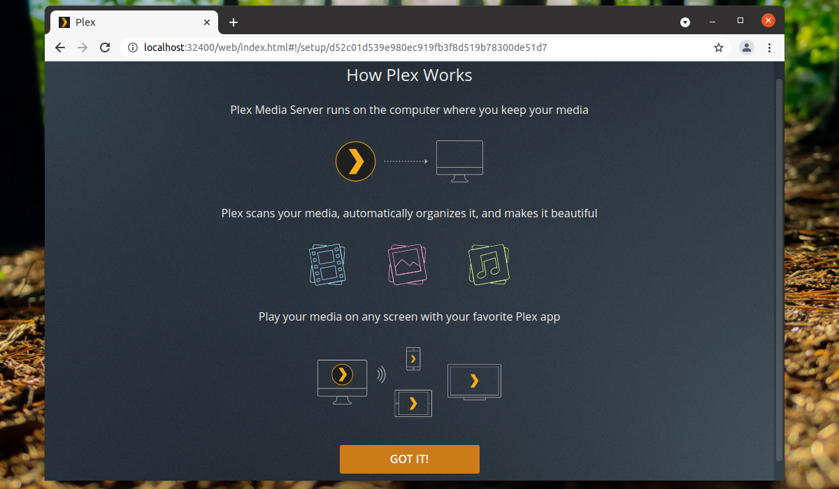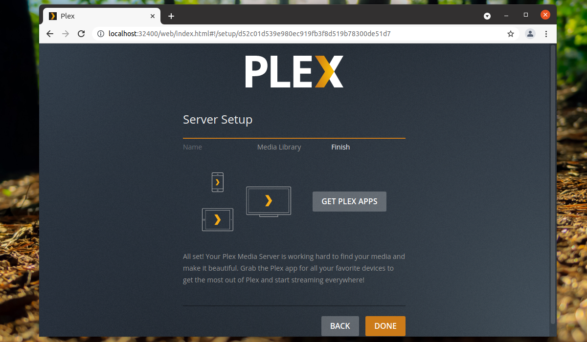 На данном этапе основная установка Plex Media Server окончена