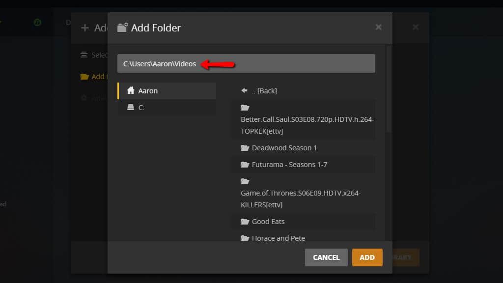 After that, click the Browse for media folder button and select the folder where you’ve downloaded your shows.