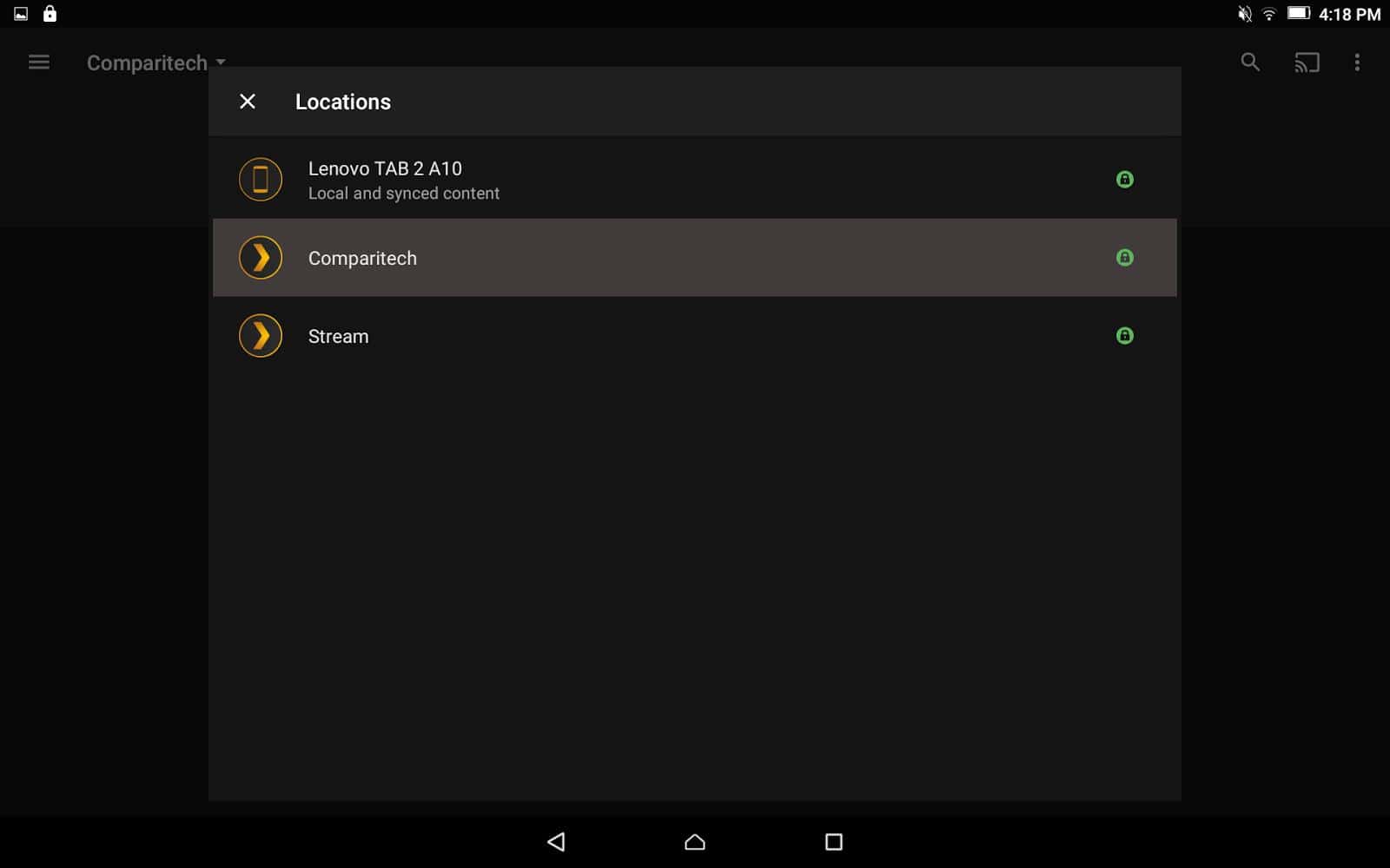 You’ll see a drop menu that opens a list of servers. This will let you choose between the Plex server you’ve created, other Plex servers you own, and a list of files synced to your device if you have a premium membership. Select the appropriate server.