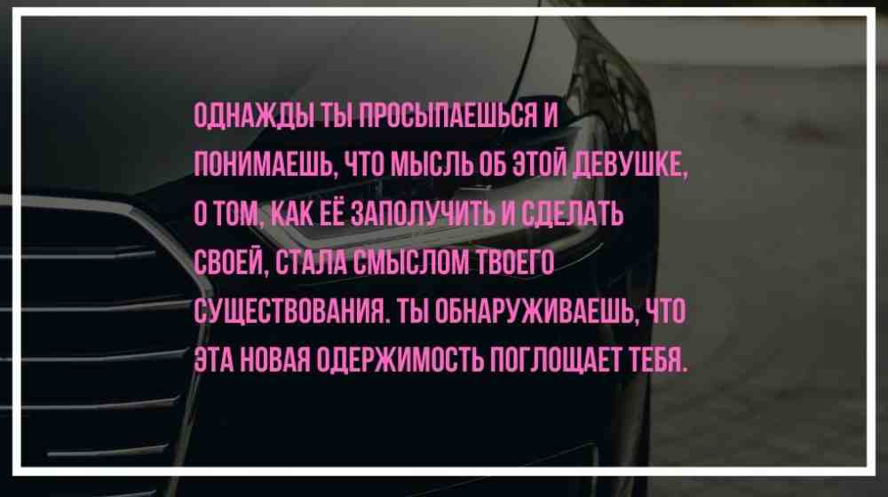 Однажды ты просыпаешься и понимаешь, что мысль об этой девушке, о том, как её заполучить и сделать своей, стала смыслом твоего существования. Ты обнаруживаешь, что эта новая одержимость поглощает тебя.