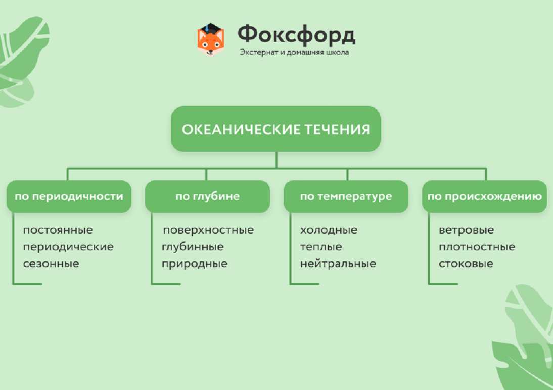 Океанические течения отличаются по происхождению, периодичности, глубине и температуре.