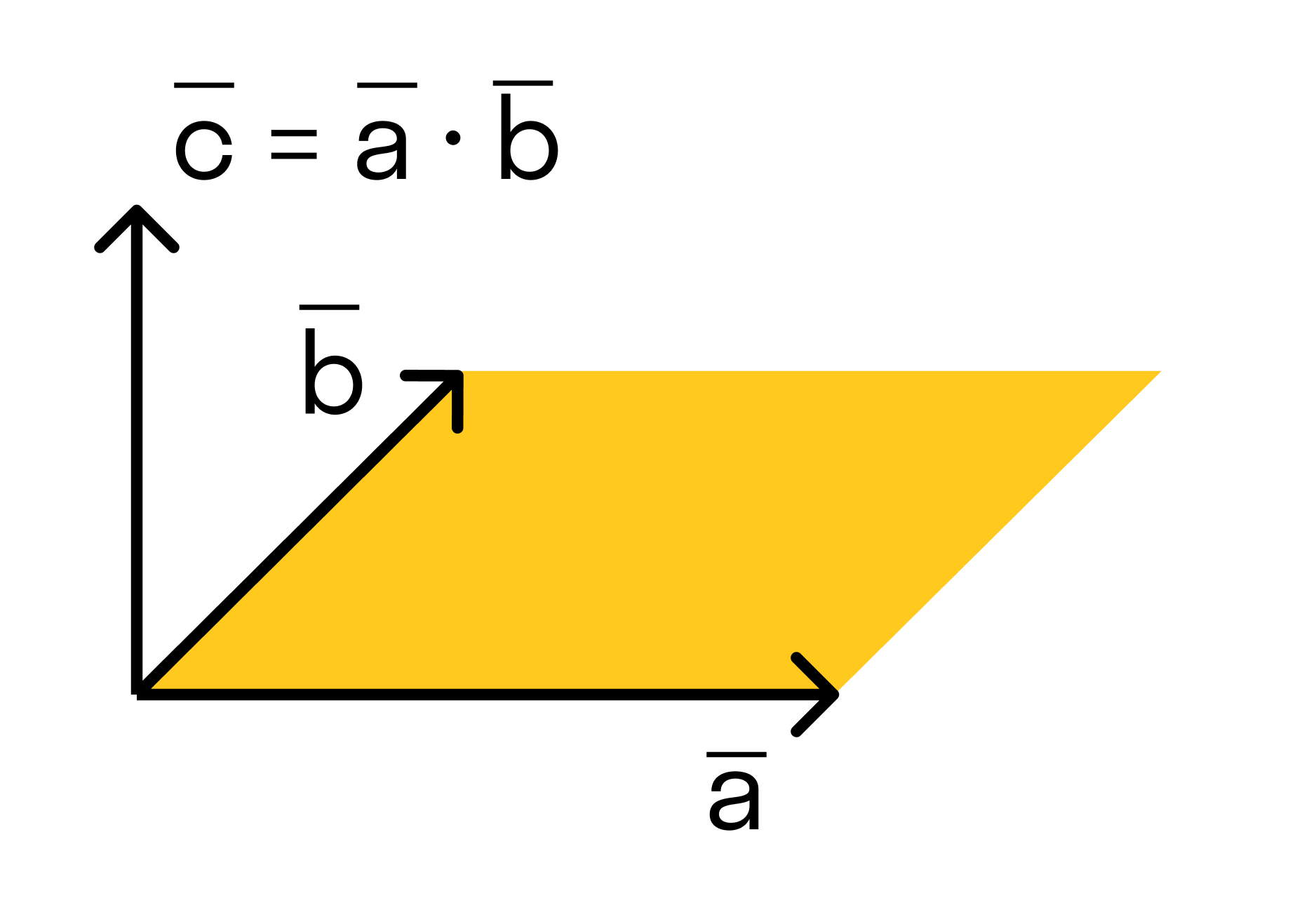 Векторным произведением вектора →a на вектор →b называется вектор →c, длина которого численно равна площади параллелограмма построенного на векторах →a и →b, перпендикулярный к плоскости этих векторов и направленный так, чтобы наименьшее вращение от →a к →b вокруг вектора c осуществлялось против часовой стрелки, если смотреть с конца вектора →c.