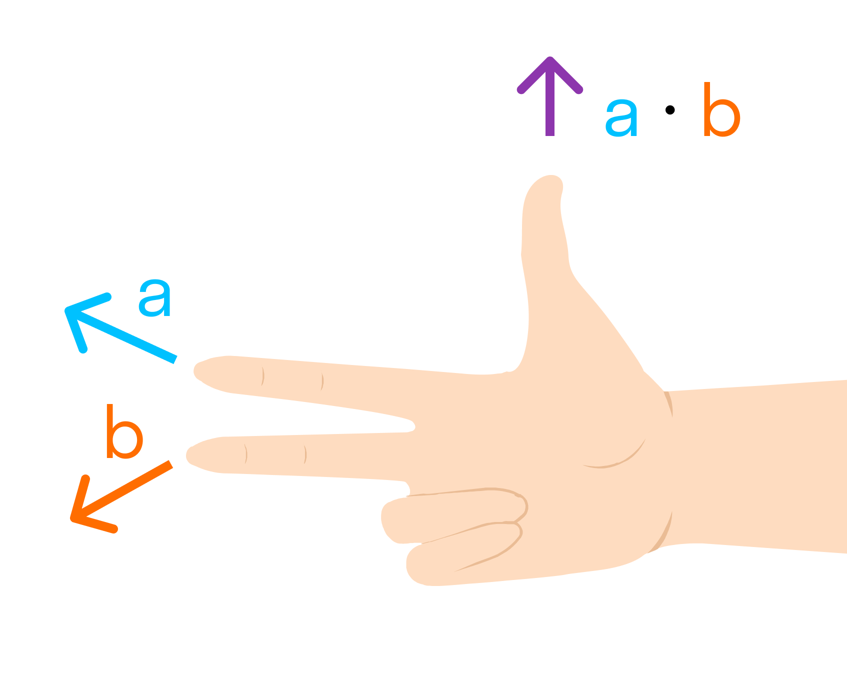 Другое определение связано с правой рукой человека, откуда и есть название. На рисунке тройка векторов →a, →b, является правой.