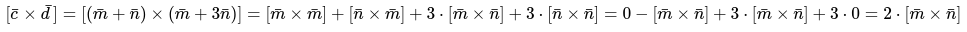 Найдем векторное произведение этих векторов, перемножая их как многочлены (согласно свойств векторного произведения):