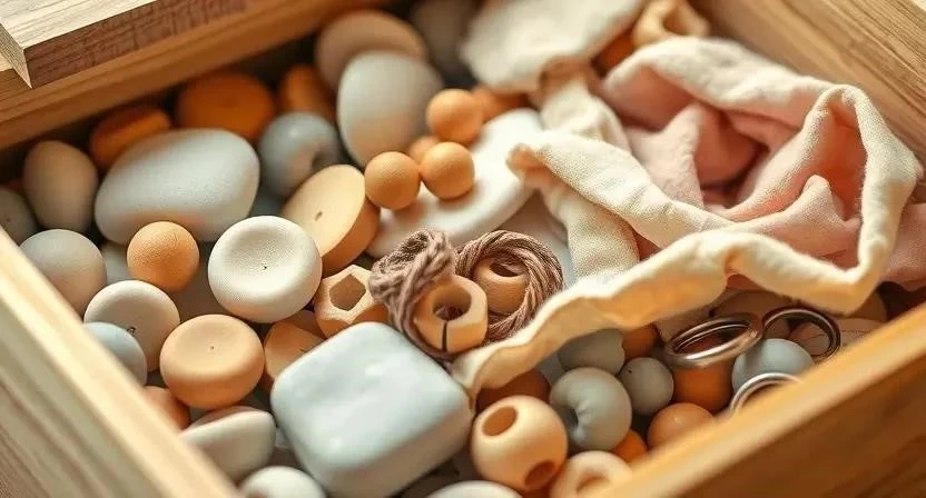| 6-9 месяцев | Сенсорные коробки | Развитие тактильного восприятия | Контейнер, крупы, макароны |