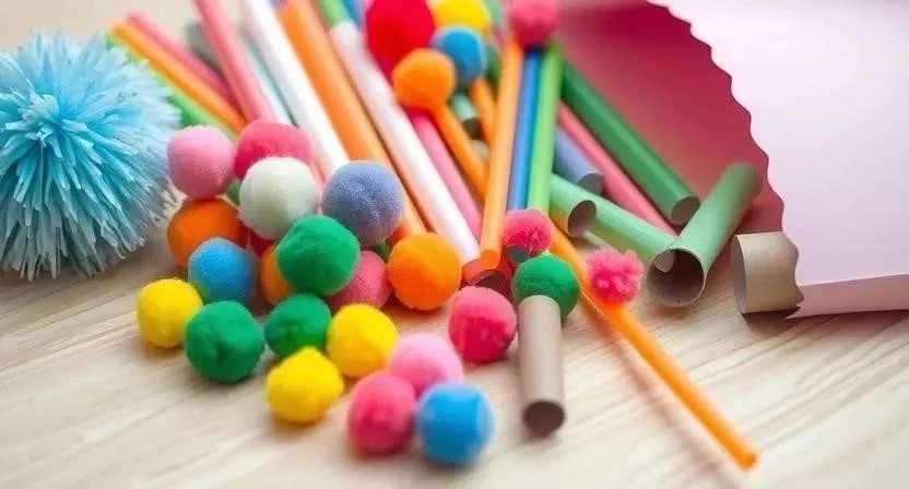 - Поделки: Создавайте различные поделки из помпонов и соломинок, например, животных или цветы.