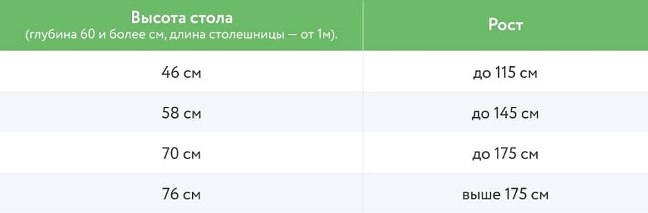 Столы-трансформеры. Такие столы для учёбы могут «расти» вместе с ребёнком — их размер и параметры регулируются параллельно с ростом школьника. Средняя высота — от 50 до 80 сантиметров. Удобны своей практичностью: не надо ещё раз тратиться на новый стол через 2–3 года.