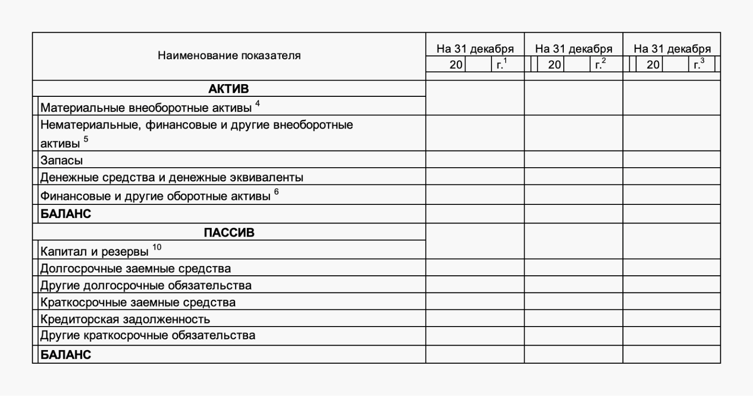 Упрощённая форма бухгалтерского баланса. Её могут заполнять компании, которые ведут упрощённый бухгалтерский учёт.