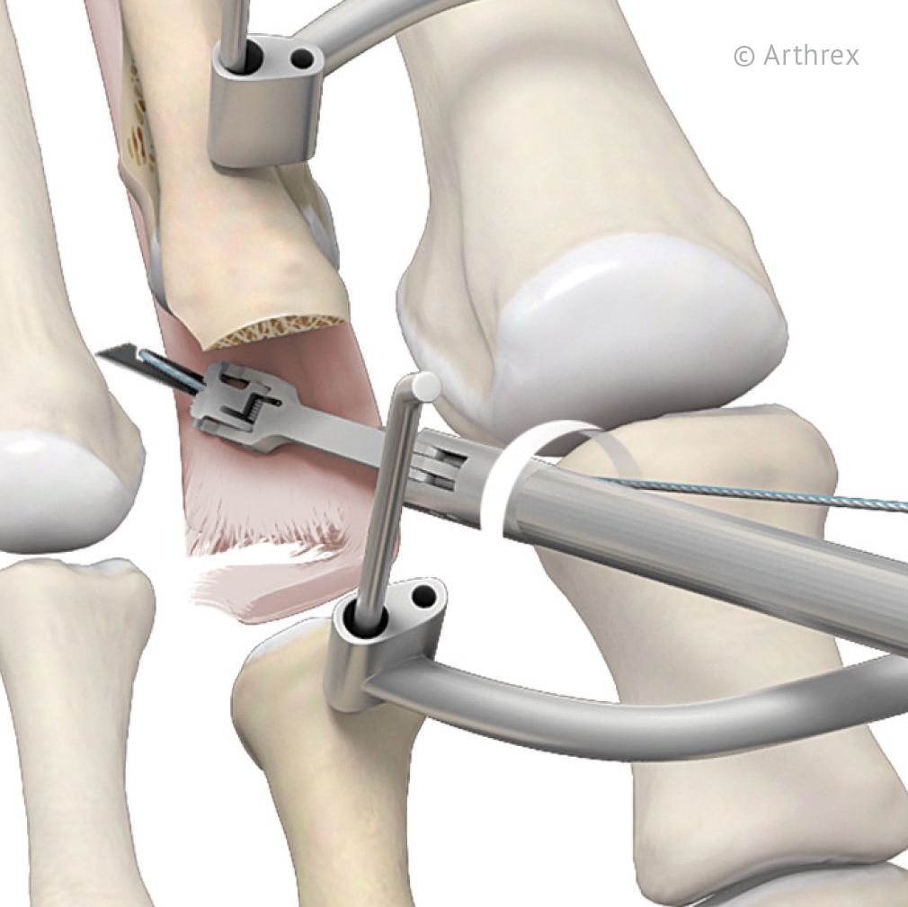 Когда доступ к тканям получен, проводят эктомию экзостоза – удаление патологического костного нароста. Если методика предполагает удаление части кости пальца, хирург-травматолог ее перепиливает и меняет ось деформированного участка пальца. Чтобы закрепить полученные результаты на следующем этапе операции производят артродез. Под этим медицинским термином понимают фиксацию тканей при помощи металлических винтов и других специальных приспособлений. Оканчивается оперативное вмешательство наложением швов на капсулу и мягкие ткани.