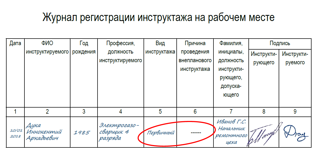 Кроме того, должна быть соблюдена последовательность всех видов. Так, повторный всегда следует за первичным, а он, в свою очередь, не может быть проведен датой ранее той, что отмечена в журнале проведения вводного.