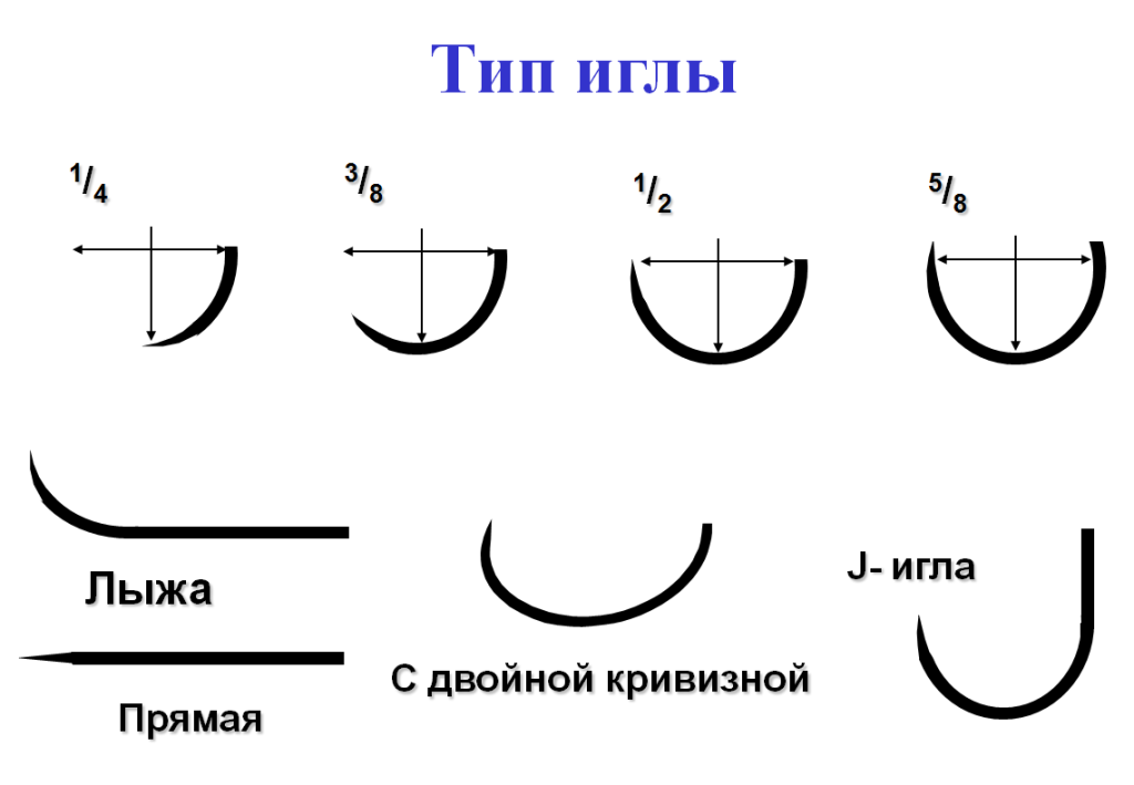 По длине, радиусу инструменты также резко разнятся: медиглы с крупным радиусом, удлиненные практикуют для накладывания швов на обширных участках, с плотной поверхностью (брюшная полость). Иглы с малым диаметром хороши в офтальмологии. Отдельную группу представляют атравматические иглы, что были внедрены в хирургическую практику не так давно, но посредством своих свойств в аспекте минимума повреждений снискали популярность среди оперирующих.