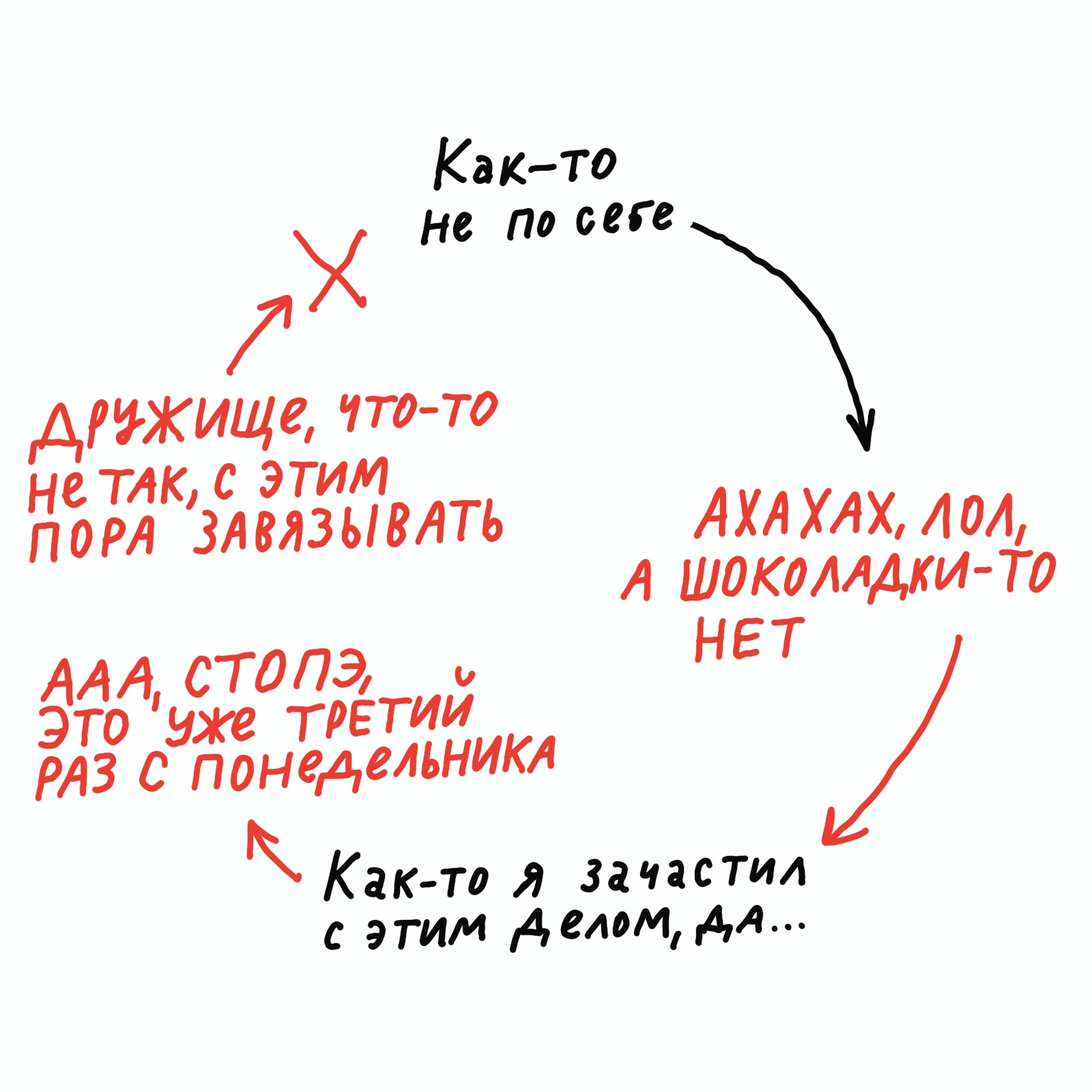 А правда часто оказывается неприятной. Может, например, выясниться, что бросили вы исключительно под давлением родственников или медиков, а на самом деле не хотели этого, потому что курение компенсировало вам нехватку удовольствия от самой жизни. А это значит, что для настоящего избавления от зависимости вам нужно не с курением разбираться, а с тем образом жизни, который вас не устраивал. Возможно, выяснится. что на самом деле вы хотите, например, развестись, сменить профессию или переехать в другой город. Или, наоборот, создать семью и завести детей. Или полностью сменить круг общения. Признавать такие вещи бывает сложно и даже страшно, особенно если ваши внутренние цели и потребности не совпадают с общепринятыми. Но именно тут весь подвох. За каждой вредной «эндорфинной» привычкой стоит дефицит чего-то. Нужно понять, какую именно «дырку» вы пытаетесь ей заткнуть.