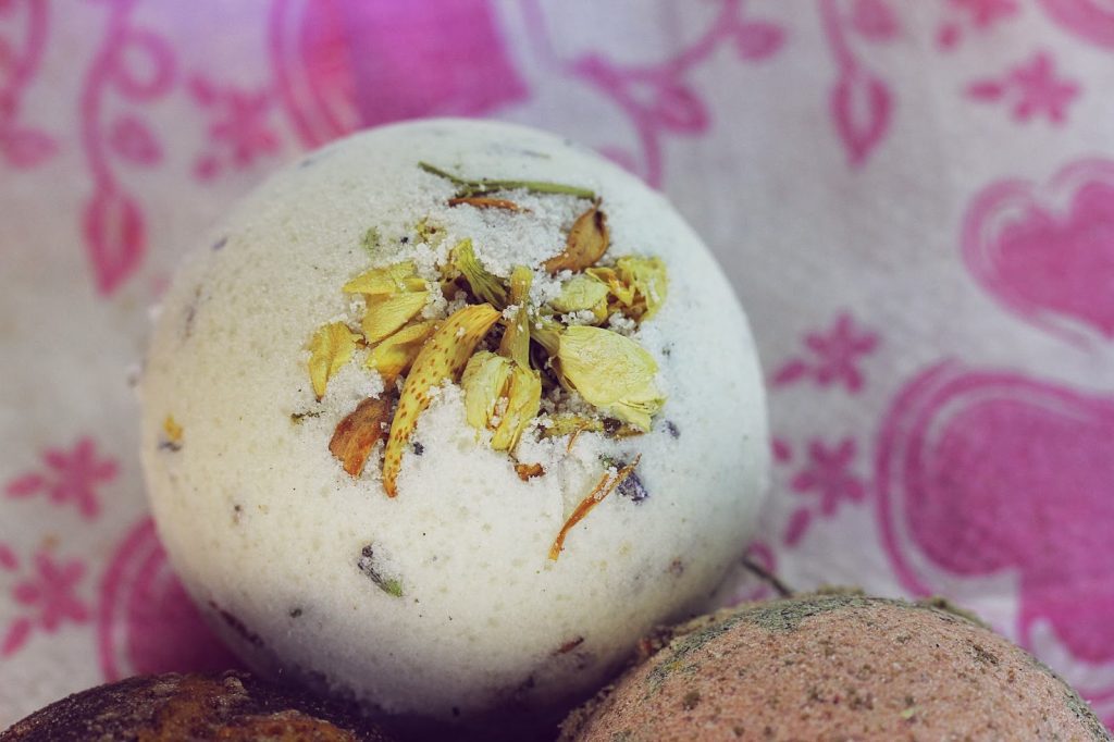 Оригинальным подарком станет бомбочка для ванны из крахмала с сухоцветами. Для ее создания понадобятся ингредиенты, которые были использованы в классическом рецепте. Из новых компонентов добавляют сухие цветы — как наполнитель. Можно использовать аптечный сбор или засушить их самостоятельно.