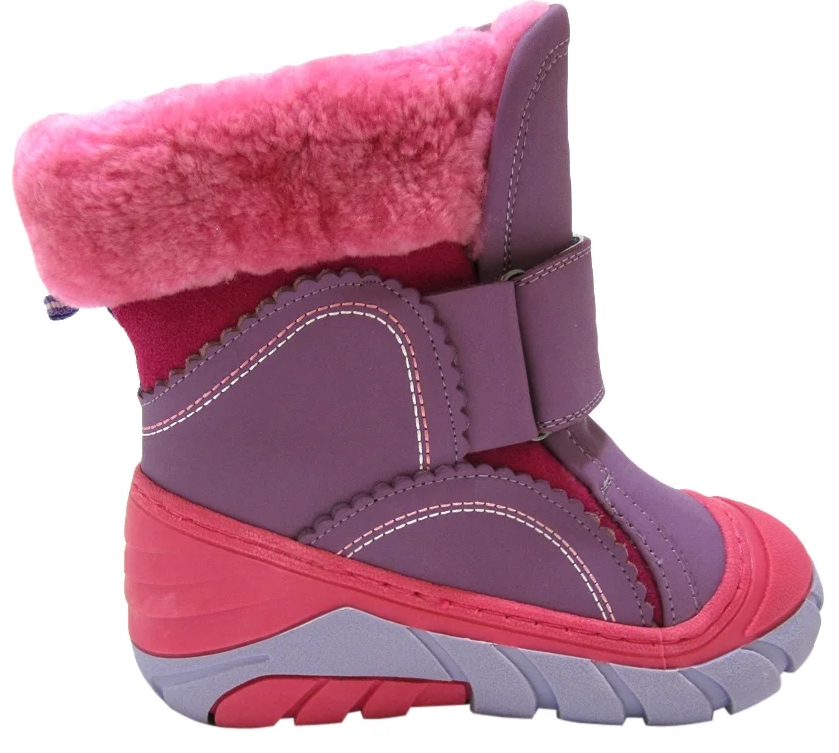 Верх «Kapika 42305» изготовлен из искусственной кожи и текстиля. Благодаря этому ноги не будут мокнуть при соприкосновении обуви со снегом. Ноги ребенка всегда будут в тепле, поскольку для изготовления подкладки производитель использовал искусственный мех в сочетании с натуральной шерстью. Такая комбинация не даст меху «стоптаться» со временем, а ноги не почувствуют холода, даже при долгой прогулке.