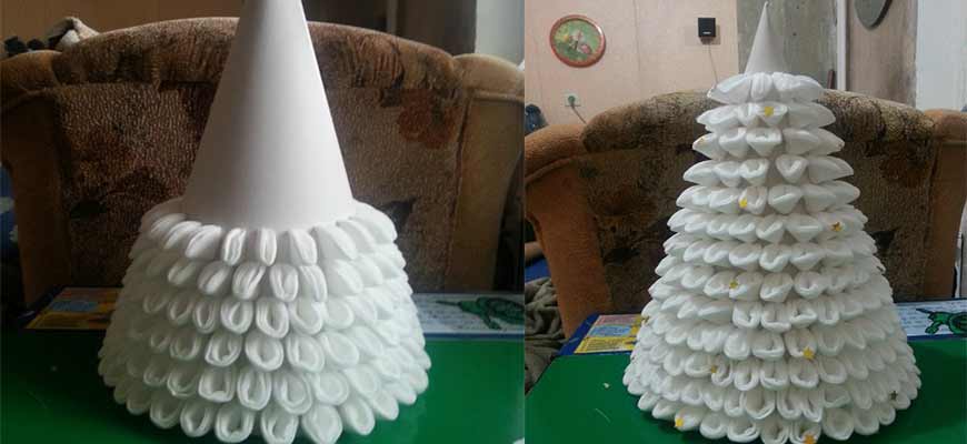 Для изготовления новогодней ёлки, потребуется выполнить такие действия: