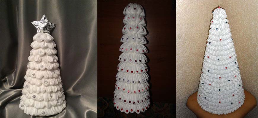 Все ватные диски складываются треугольниками – сначала пополам, затем еще раз пополам: это будут еловые лапки.