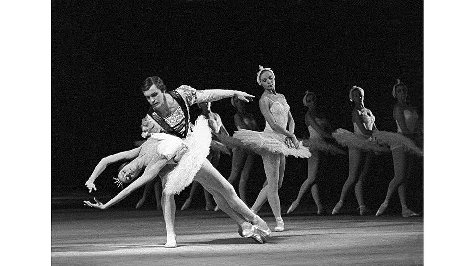 Сцена из балета П. И. Чайковского “Лебединое озеро”. Три лебедя – артистки балета Наталья Бессмертнова (в центре), Л. Иванова и Наталья Рыженко. Большой театр, 1965 год. Фото – Александр Макаров