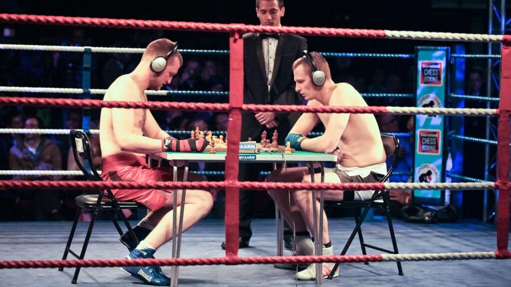 Казалось бы, как можно совместить шахматы и бокс? Находчивые ребята из Финляндии уже давно все придумали и реализовали. Попробуем сначала представить: два боксера дерутся шахматными фигурами? Дерутся шахматными досками? Или с каждой стороны ринга стоят по 16 боксеров, одетых в черное и белое, и устраивают бои?