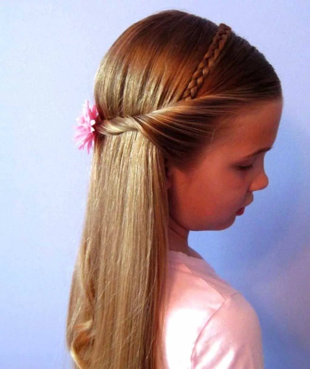 Для школы многие девчонки предпочитают оставить большую длину волос, чтобы можно было по-разному их укладывать и они не мешали учебному процессу. Выполняя универсальную стрижку, ее можно заделать с помощью заколок или одеть ободок.