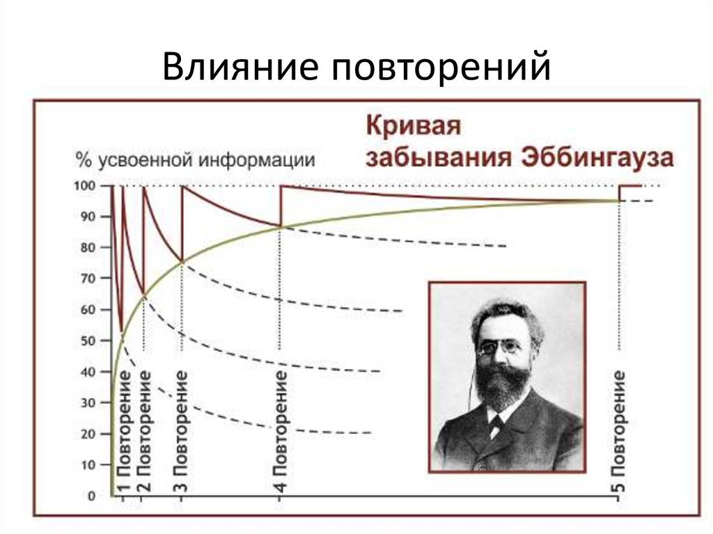 Ни в коем случае не пропускайте повторения, если они требуются для освоения навыка. Еще один взгляд на кривую Эббингауза: хотите, чтобы материал у вас «от зубов отскакивал»? Повторяйте. Пять повторений – и вы освоили то, что нужно.