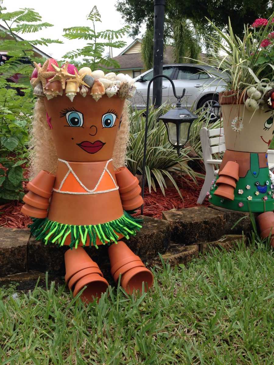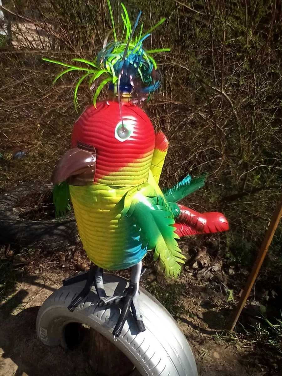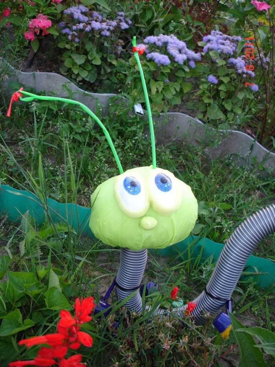В сети можно найти превеликое множество фото новинок поделок для сада с использованием, казалось бы, немыслимых для этого вещей: застывшей монтажной пены, кусочков пенопласта, камней необычной конфигурации, устаревших элементов мебели, резиновых покрышек, обычных бутылочек из пластика и т.д.