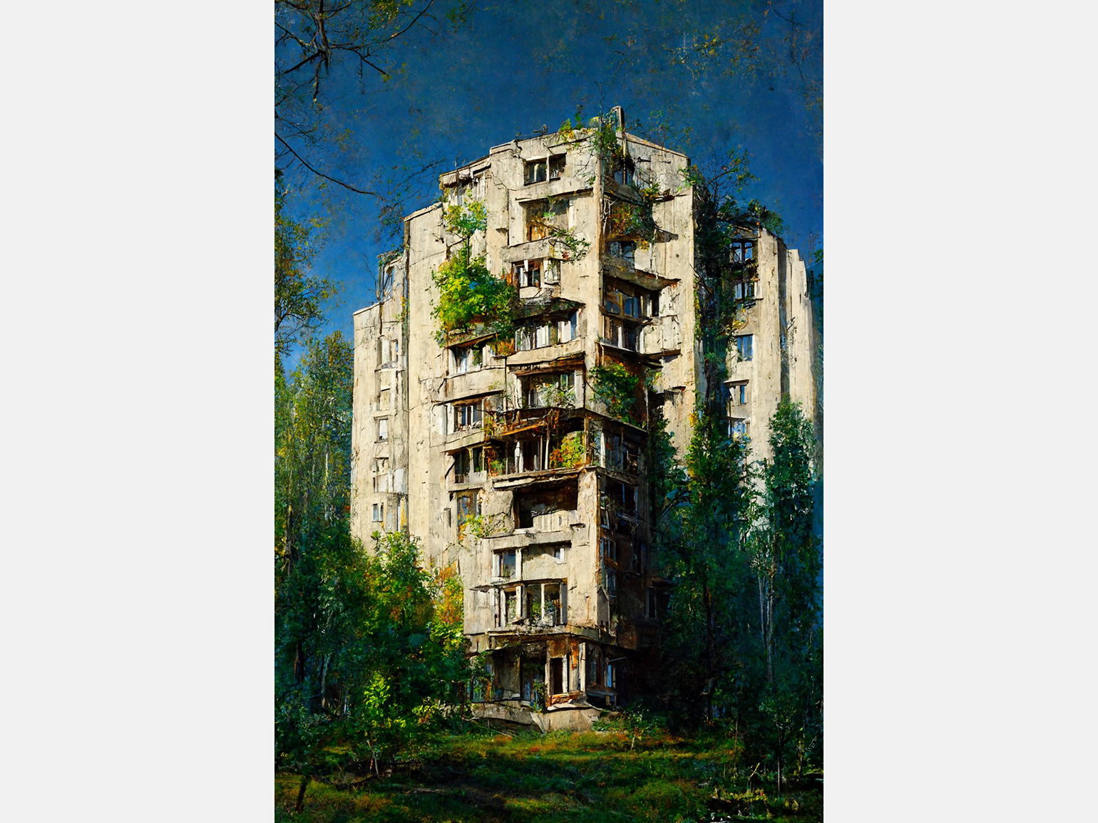 Александр Доброкотов с помощью нейросетей представил, как могли бы выглядеть панельные дома в стилях разных художниковИзображение: @dobrokotov / Midjourney