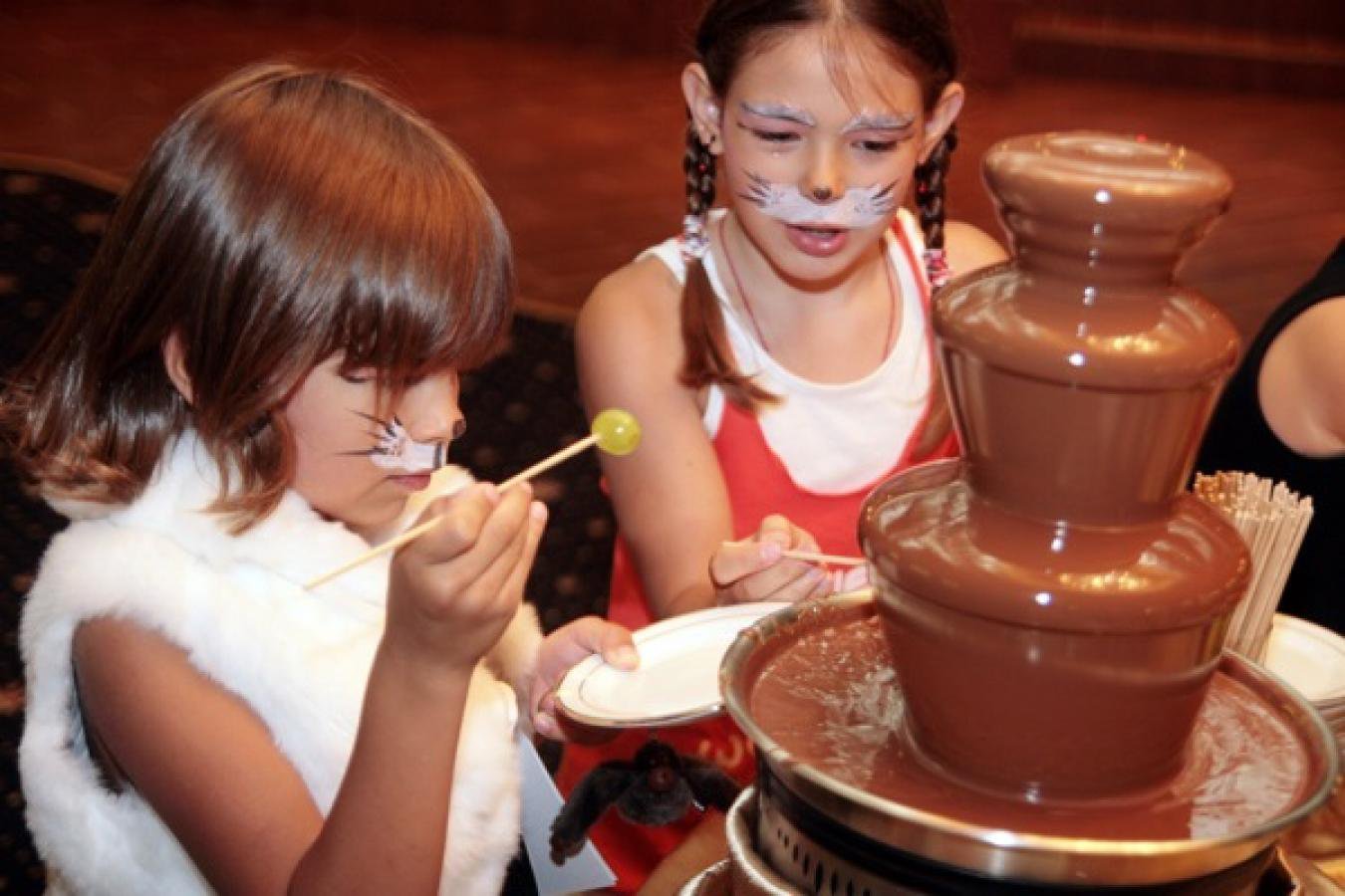 И если на сладком столе на день рождения появится шоколадный фонтан с фруктами, то восторга детей не будет предела.