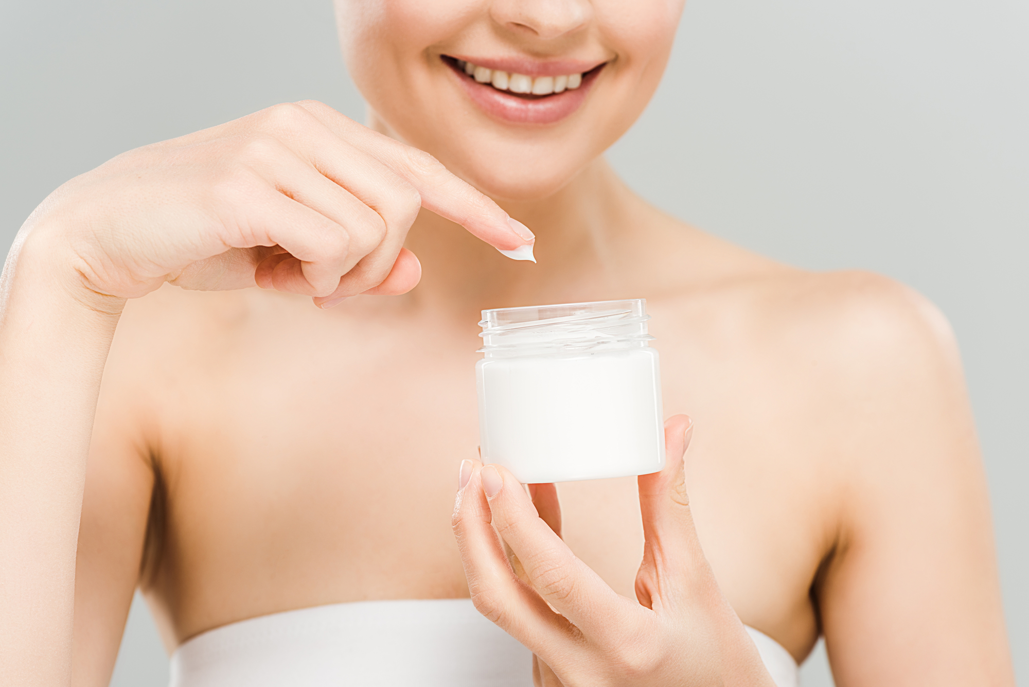Возьмите крем для лица и смажьте им нижнюю зону от носа до подбородка.